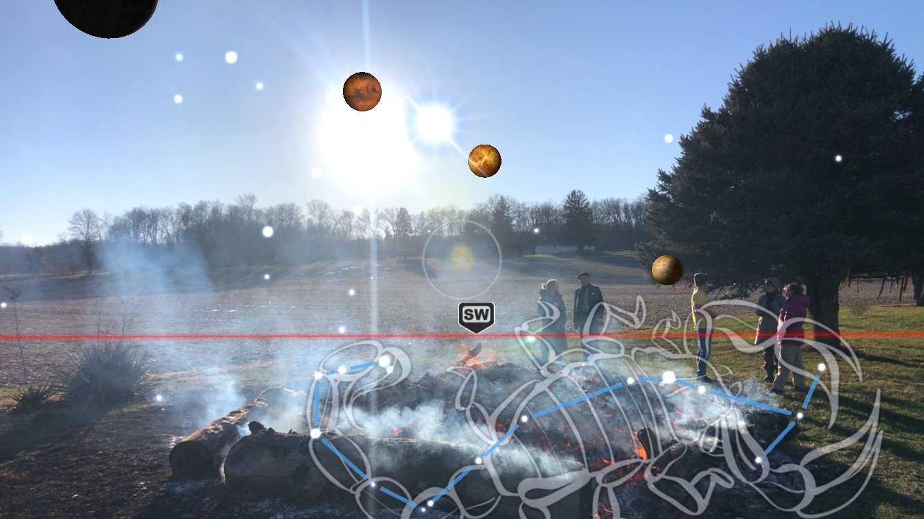 See below Immanent Function in action — a realized goal of this book. Winter solstice now finds the sun at the leading edge of Scorpio in the dawning of the Age of Aquarius. We enacted this sacred fire ritual at Sacred Stones Mystical Farm, here in Ohio. The photo was taken using the SkyView app.